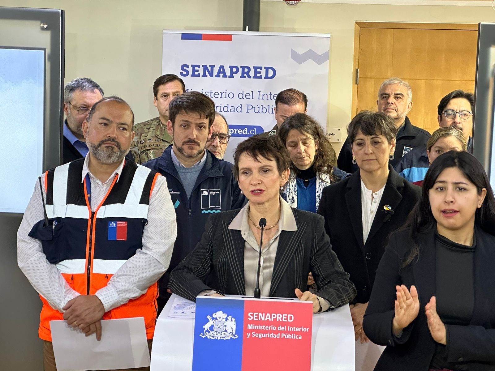 Por su parte, el Servicio Nacional de Prevención y Respuesta ante Desastres (SENAPRED) mantiene Alertas Rojas para la Región del Maule por evento meteorológico; para las comunas de Longaví, Retiro, Linares, San Clemente, Licantén, Curepto, Hualañé, Teno, Sagrada Familia, Rauco, Constitución, Maule, Pencahue y San Javier por desborde; para la Región de Ñuble por crecida y evento meteorológico; y para la Región del Biobío por desborde. Asimismo, permanecen vigentes las alertas Amarillas para las regiones Metropolitana, O’Higgins y Biobío por evento meteorológico; para la comuna de San Clemente, Colbún, río Biobío y Alto Biobío por crecida. Por su parte, la Región de Valparaíso permanece con Alerta Temprana Preventiva.