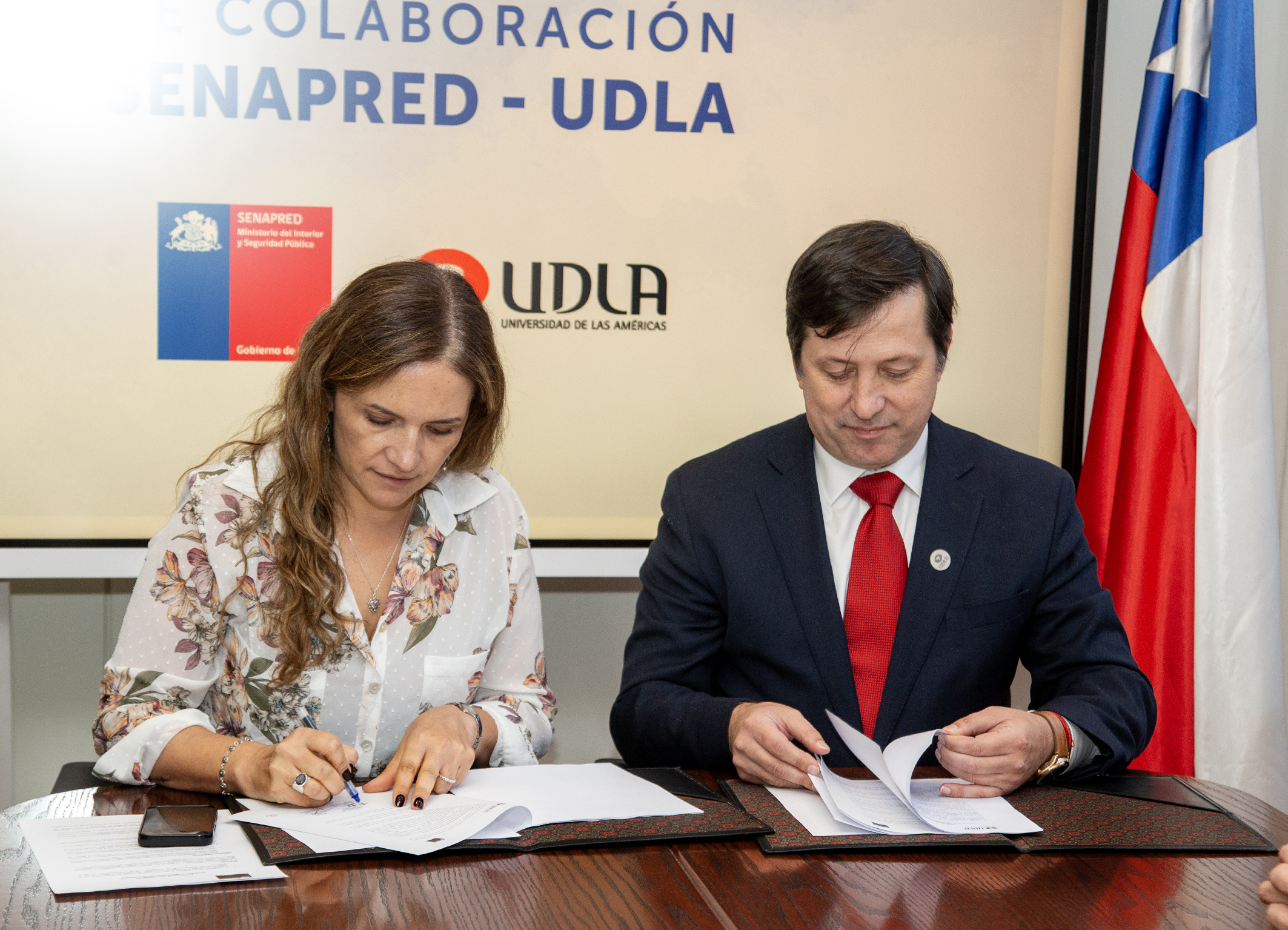 En una significativa ceremonia encabezada por la Directora Nacional del Servicio Nacional de Prevención y Respuesta ante Desastres (SENAPRED), Alicia Cebrián; y el Prorrector de Universidad de Las Américas (UDLA), Alejandro Zamorano; se llevó a cabo la firma del convenio de colaboración entre ambas instituciones, que tiene como objetivo principal establecer un marco de colaboración y asistencia para el desarrollo de actividades de promoción y prevención de la salud mental y la Gestión del Riesgo de Desastres (GRD) en las regiones de Valparaíso, Metropolitana y Biobío.